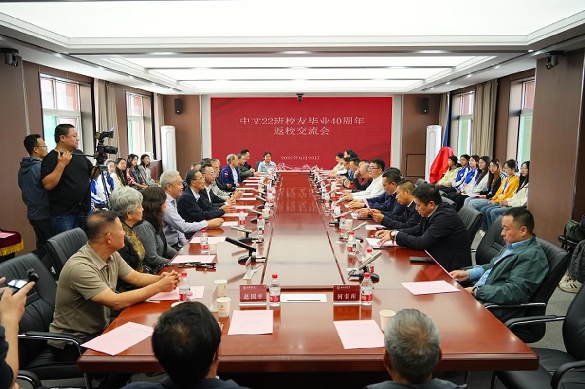 9月20日,我院文学院85届中文系21班、22班校友返校,共话毕业40年母校情、同窗谊。副校长白文宏、王小平出席相关活动。