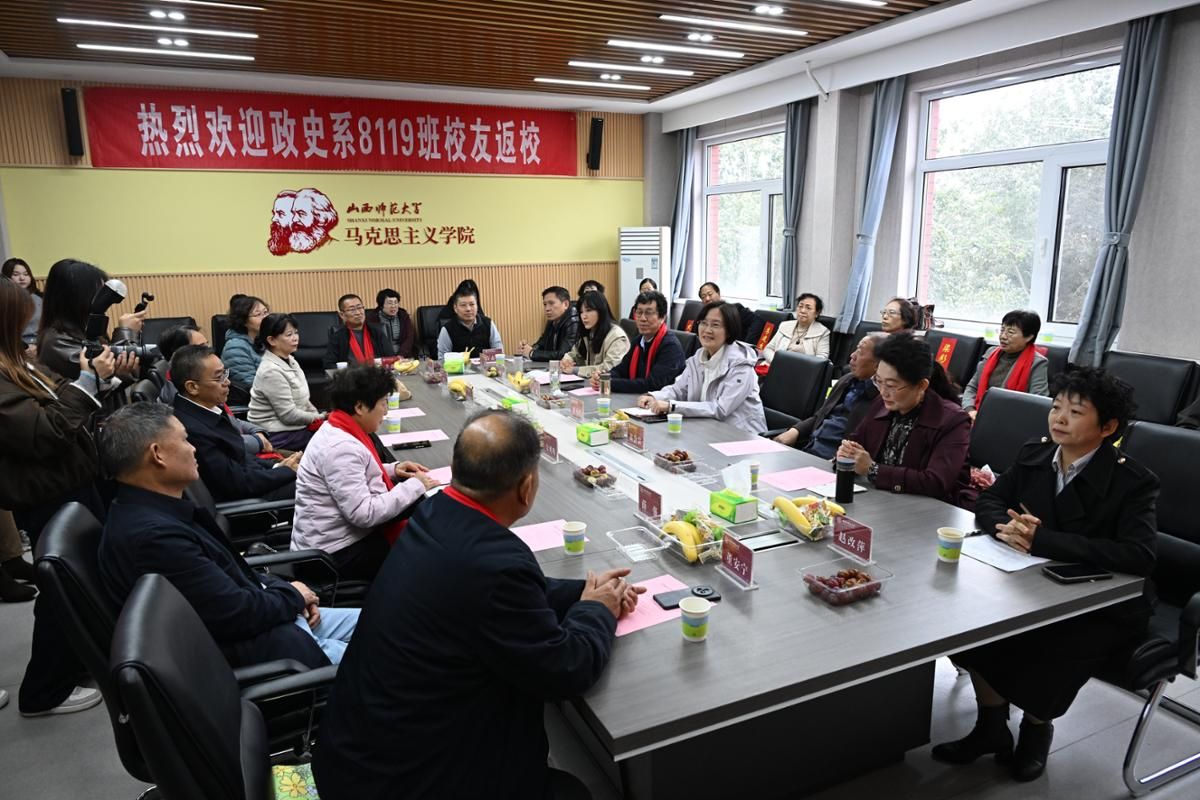 10月18日,政史系8119班级20余名校友重返母校,在马克思主义学院506会议室举行座谈会,重拾青春岁月,再续同窗情谊,共话母校深情。校长许小红出席会议。