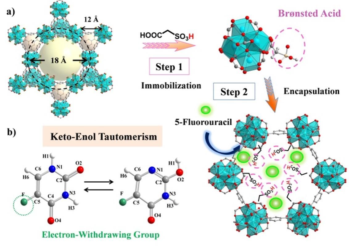 近日,我院张献明教授团队在国际化学学术顶级期刊《Angewandte Chemie International Edition》(《德国应用化学》)发表了题为“Bio-Transport Regulation Inspired 5-Fluorouracil Keto to Enol Tautomerism Achieving High Proton Conductivity”(Angew. Chem. Int. Ed. 2025, e202512366)的研究论文。该团队创新性地提出了“动态调控”策略。他们将一种常见的抗癌药物分子——5-氟尿嘧啶(5-FU)作为“分子开关”,通过两步法精确地封装到经过磺酸基功能化修饰的MOF-808孔道中。这项工作将生物的动态智慧融入人工材料的设计中,通过引入可控的分子级运动来协调传导性与稳定性的矛盾,这一全新的设计思路为开发一系列高性能仿生离子导体材料指明了方向。论文链接:https://doi.org/10.1002/anie.202512366