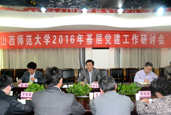 4月12日下午,我院2016年基层党建工作研讨会(第四场)在科学会堂1011会议室召开,校党委书记符惠明、副书记薛耀文出席了会议。部分学院、部分机关11位教工党支部书记、2名教师党员代表参加了研讨会。会议由校党委委员、组织部部长高峰主持。