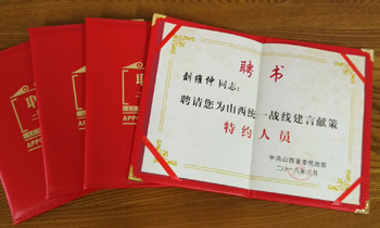 3月30日,山西省委统战部召开山西省统一战线建言献策特约人员座谈会,我院党外人士刘维仲、崔宏义、安秋生、刘明星、张建喜五人被聘为“山西省统一战线建言献策特约人员”。