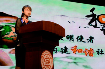 本次道德讲堂通过宣讲、歌曲、诵读、小品、舞蹈相结合的形式,在理论讲述与情景表演中交互进行,以不同的风格和形式传达了人与自然和谐发展的重要性,呼吁同学们珍爱生命,保护自然环境。(陈艳红 吴一泽 陈齐辉/文 饶二保 梁海花/摄)