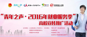 为帮助高校毕业生应对复杂就业形势,2016年3月至7月,团中央“青年之声”联合人力资源社会保障部全国人才流动中心,对人社部门开展的系列就业创业服务项目进行整合,通过团中央“青年之声”平台对接各高校校园网和各类新媒体,开展“青年之声•2016年就业服务季”高校宣传推广活动。广大高校应届毕业生可直接获得全国148个大中城市上百万招聘岗位信息、创业大赛信息、公共就业和人才服务进校园相关活动信息,以便对自己的人生和未来进行规划。